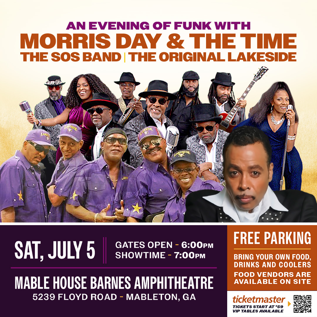 An Evening of Funk Jul 8, 2025 | 0 comments An Evening of Funk featuring Lakeside, The S.O.S. Band and Morris Day and The Time Submit a Comment Cancel replyYour email address will not be published. Required fields are marked *Comment * Name * Email * Website Save my name, email, and website in this browser for the next time I comment. Δ